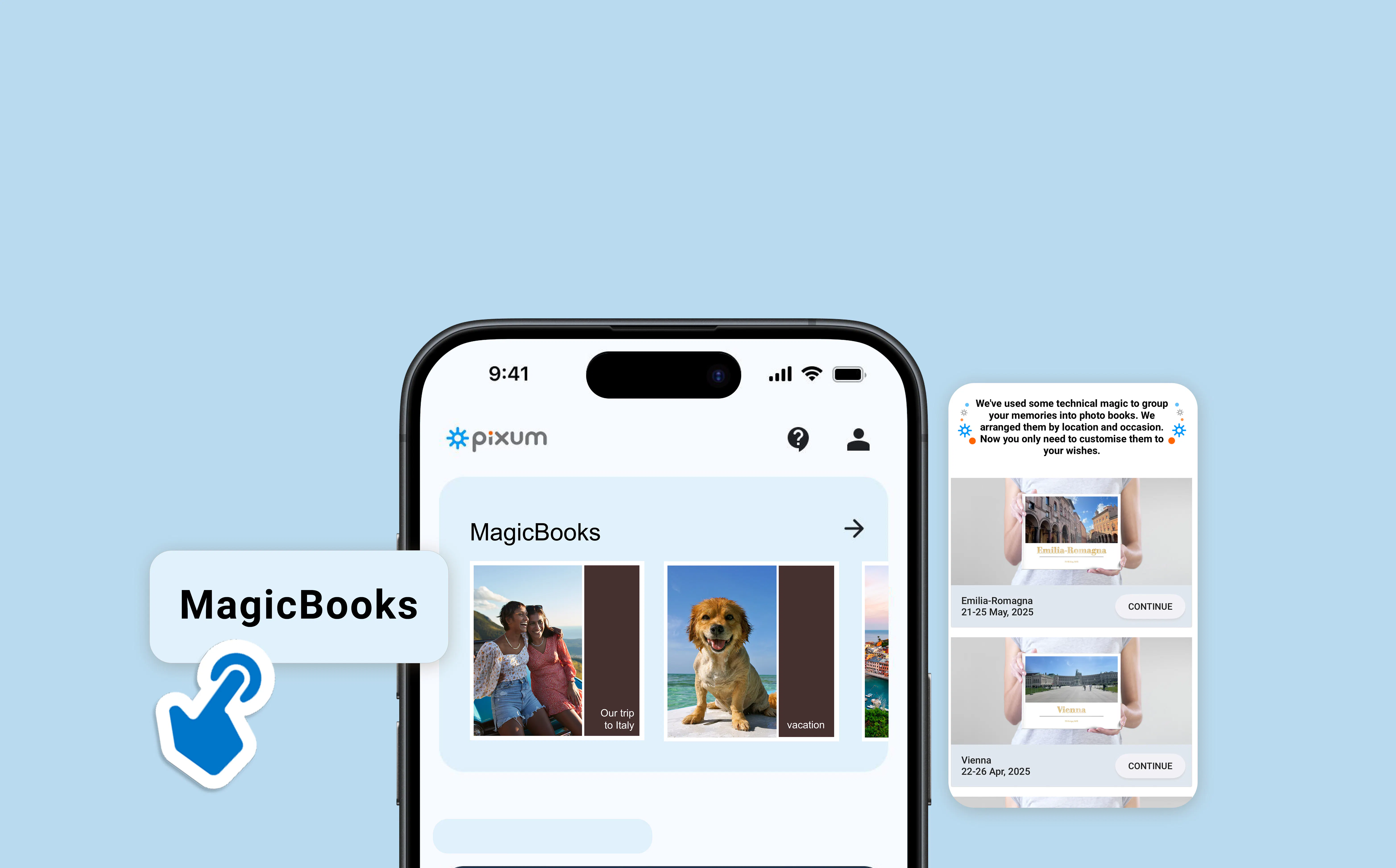 С функцията MagicBook всичките ви снимки се събират автоматично според избраната от вас тема – независимо дали става дума за сватба или пътуване до някой град. За нула време ще получите предложение за фотоалбум, което можете напълно да персонализирате и оформите точно така, както ви харесва.😍